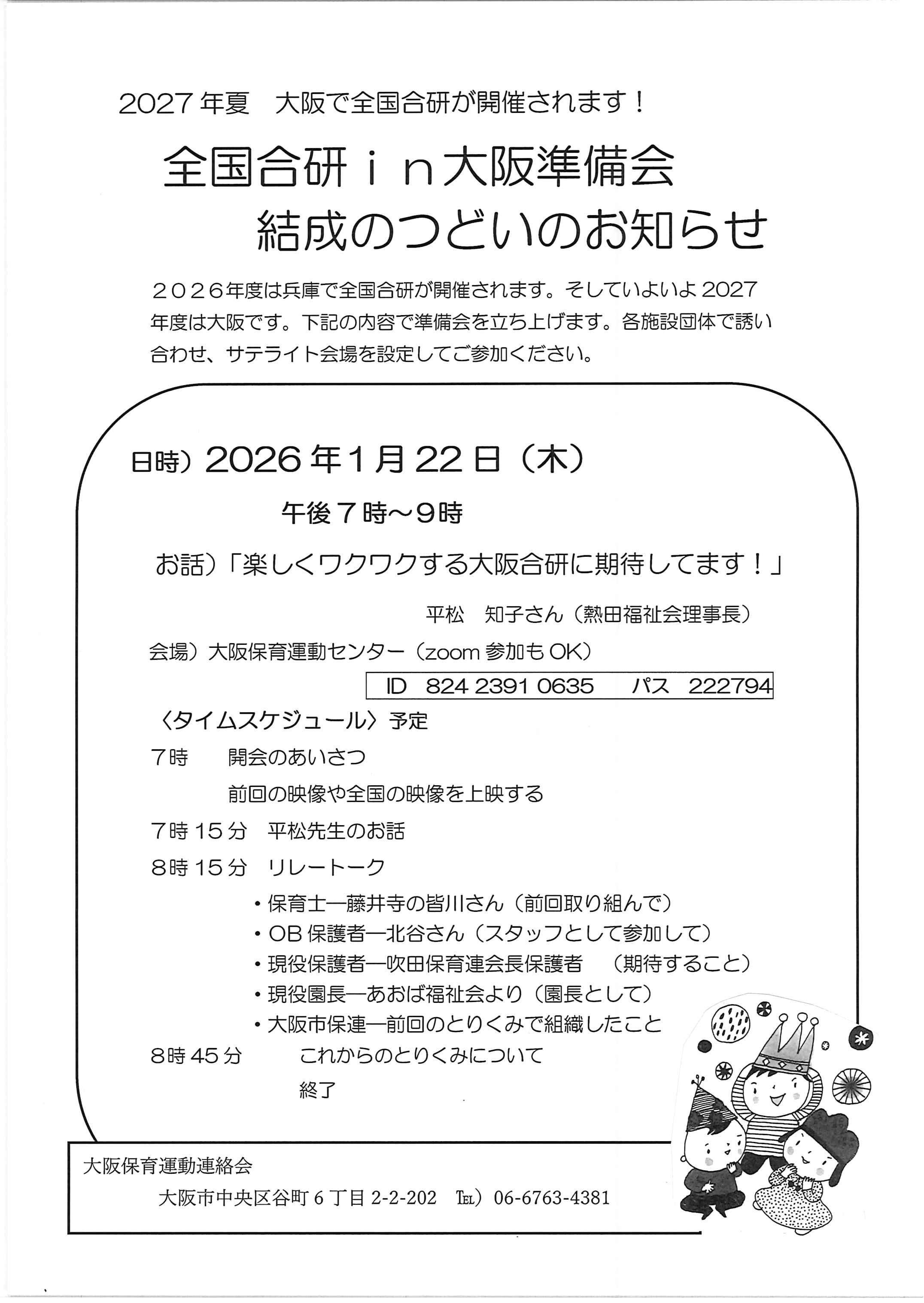 場所:大阪保育運動センター1階 (zoomありチラシ参照)